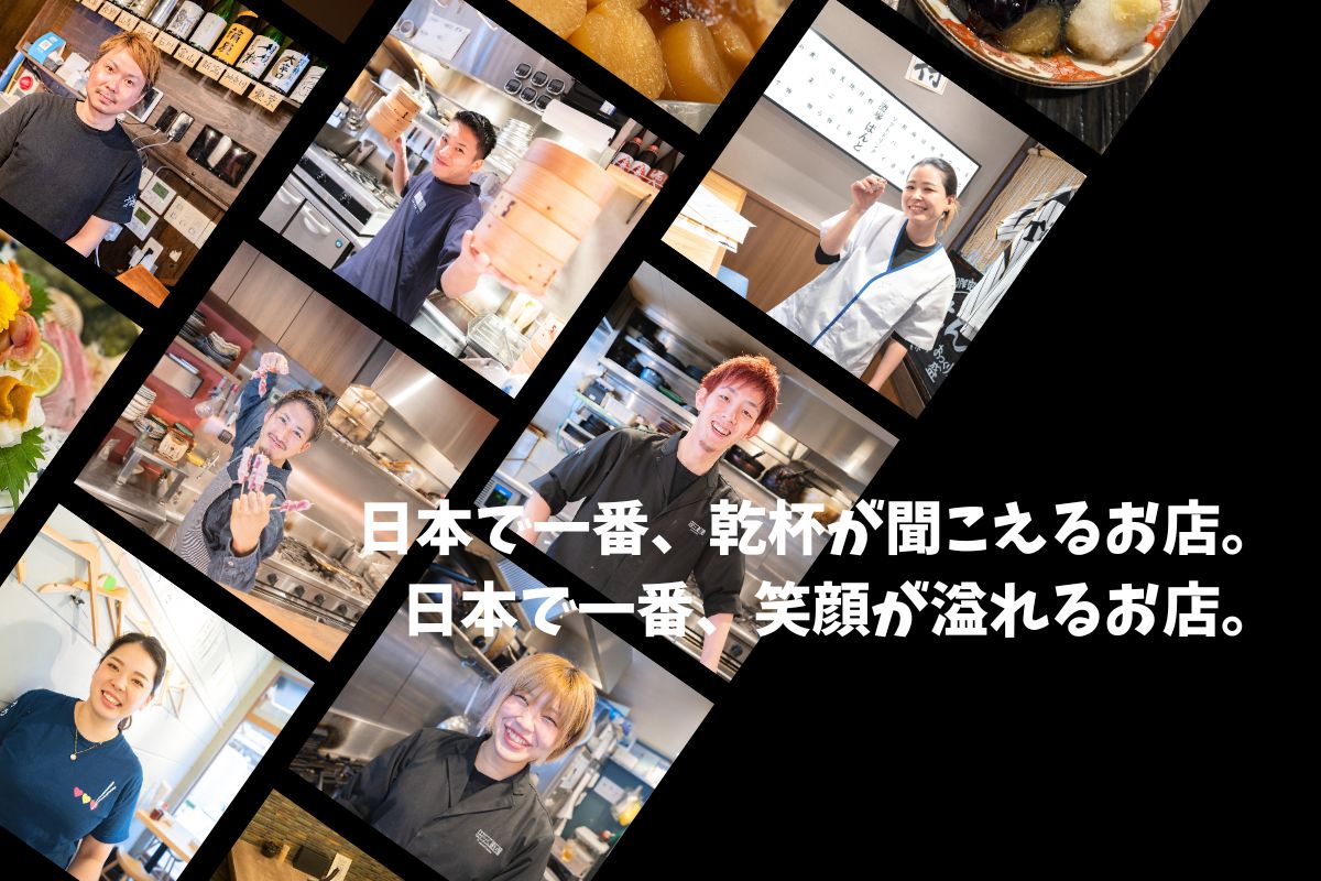 「日本で一番、乾杯の声が聞こえるお店」「日本で一番、笑顔が溢れるお店」を目指し、スタッフとお客様が笑顔で幸せな時間を共有できる場所を提供します。